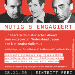 Am Freitag, den 28. November 2025, fand im Bürgerzentrum Windeck ein literarisch-historischer Abend unter dem Titel „Mutig & engagiert“ statt. Im Mittelpunkt stand der widerständige Einsatz gegen den Nationalsozialismus – erzählt anhand von Literatur, Musik, historischen Quellen und regionalen Bezügen.